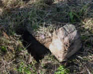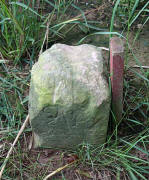 Archiv-Nr. GS3386 Gemeinden: Königsbach - Singen Gebiet: König Grenzverlauf: Eckstein lag flach im Boden wahrscheinlich einige Meter vom Eckpunkt entfernt stark zerrüttet |