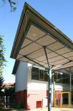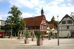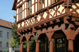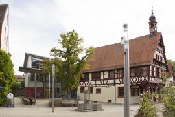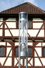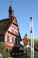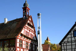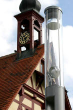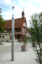 die modernen Beleuchtungskörper bilden einen reizvollen Kontrast zu den alten Bauwerken