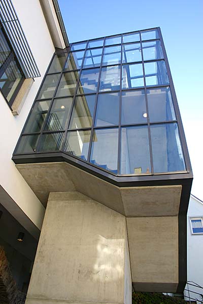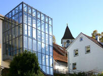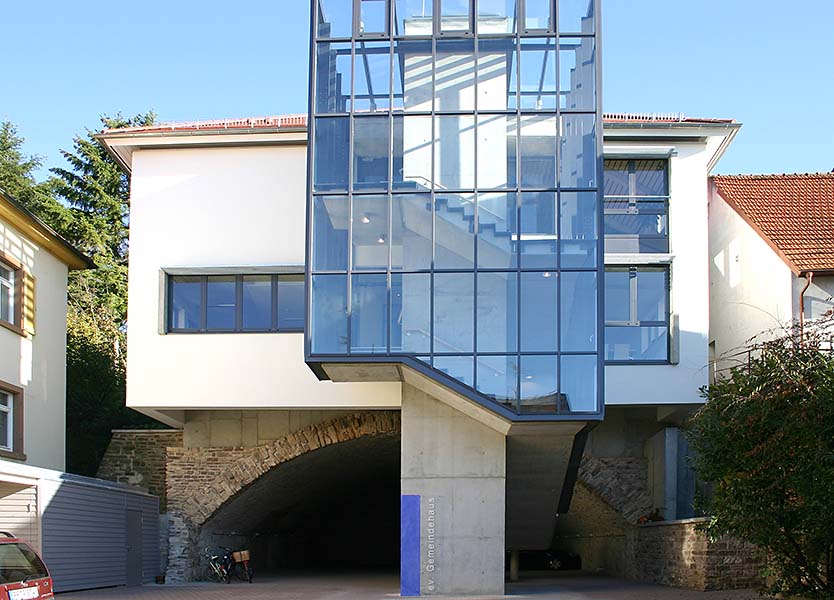 Neues Gemeindehaus (2004) auf dem denkmalgeschützten Kellergewölbe