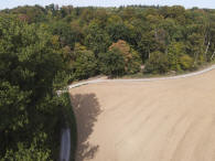 Auf der Hanghöhe lohnt ein „Abstecher“ auf einem Pfad hinter einer langen Reihe aufgestapeltem Holz zu einer Flugüberwachungs-Einrichtung. |