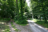 Am Ende des Waldes trifft der Weg auf den zu Wanderungsbeginn genommenen Weg von Trais. |