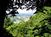 Durch den Wald sieht man in der Ferne Wöschbach. |