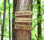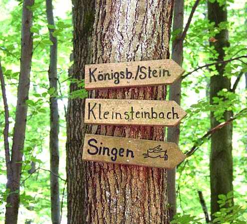 Am „Königsbacher Kreuz“ links abbiegen Richtung Wöschbach bis nach einigen hundert Metern eine scharfe Linkskurve zum Waldrand führt. Zum Waldrand abbiegen. |