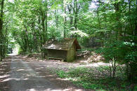 (Grenzweg), die zum Naturfreunde Haus führt. Die zweite Abzweigung (linkes Foto) dann rechts abbiegen. Link Google Maps Es ist weiter der Hegenacher Weg, der der Abbiegung folgend seinen Verlauf nimmt. Der Weg fällt steil ab und führt an einer Waldhütte vorbei. |