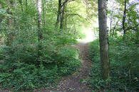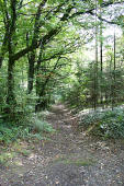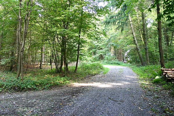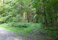 rechts in einen überwachsenen Waldweg einbiegen. (Nicht leicht zu erkennen.) Dieser Weg führt Richtung Waldrand. |